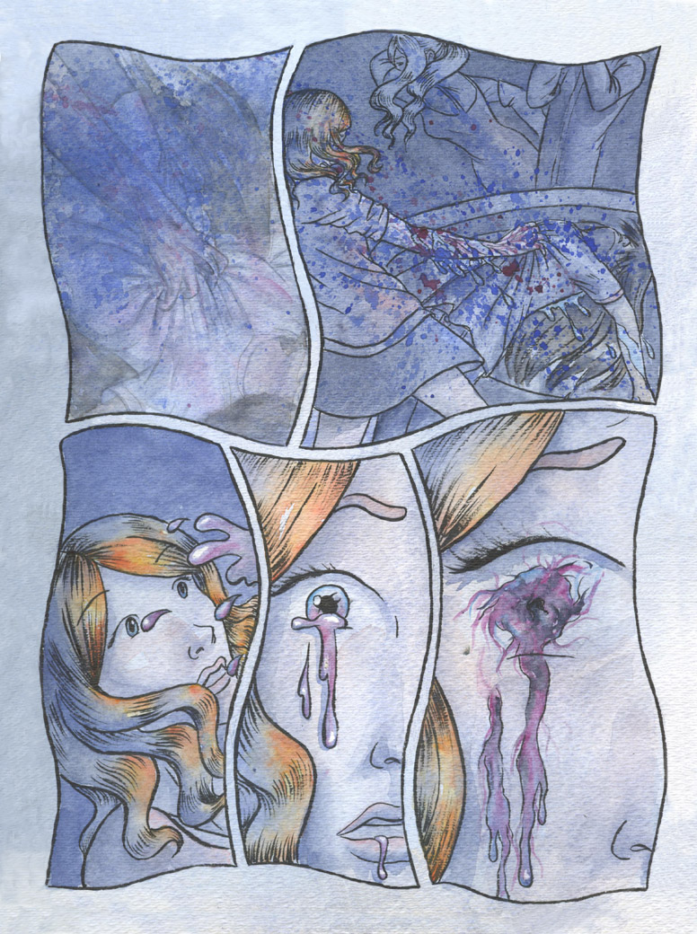 I hate to admit it, but those last three panels made me slap my hands over my right eye. I love the way you demonstrate the corruption of her face as that fluid flows down.